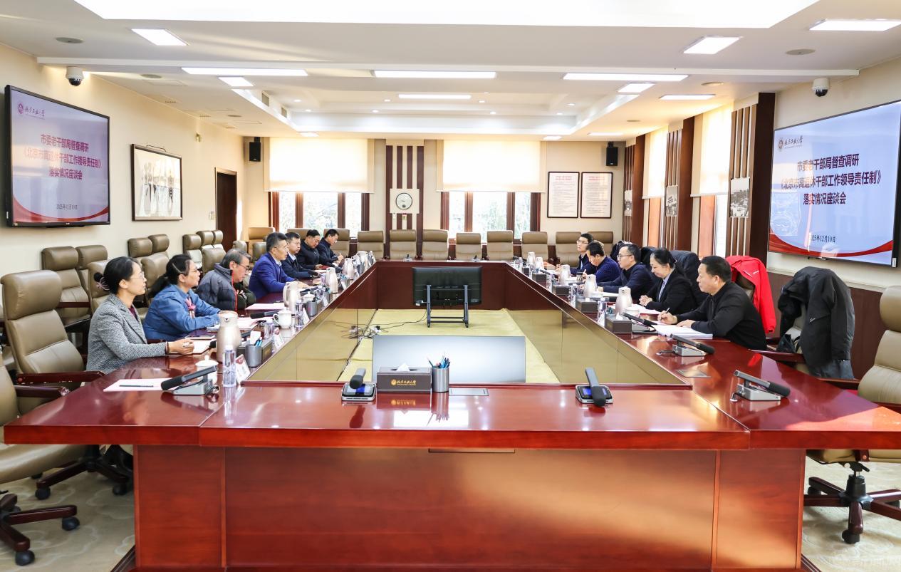 离退休党委书记、工作处处长赵永兵围绕学校贯彻落实《责任制》情况作了专题汇报,重点介绍了我校在强化组织保障、提升党建质量、精准服务老同志以及引导发挥“银发”优势等方面的工作举措与成效。